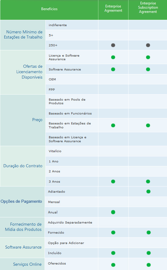 Confira abaixo, a comparação entre os recursos e benefícios para ajudá-lo a identificar o melhor Programa de licenciamento para sua empresa.